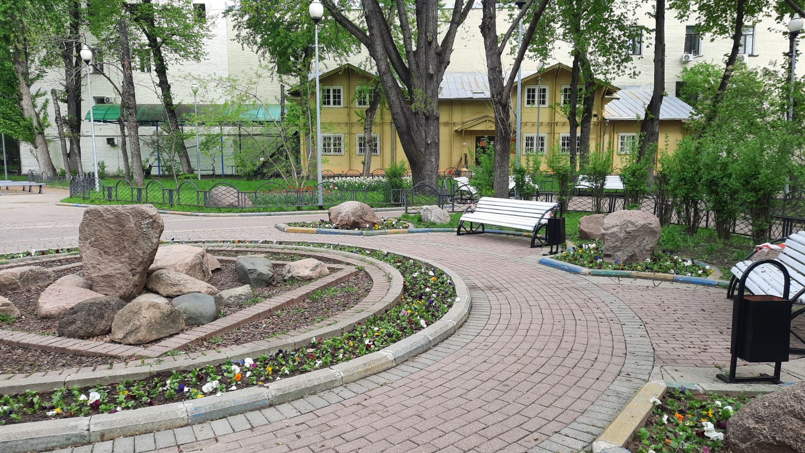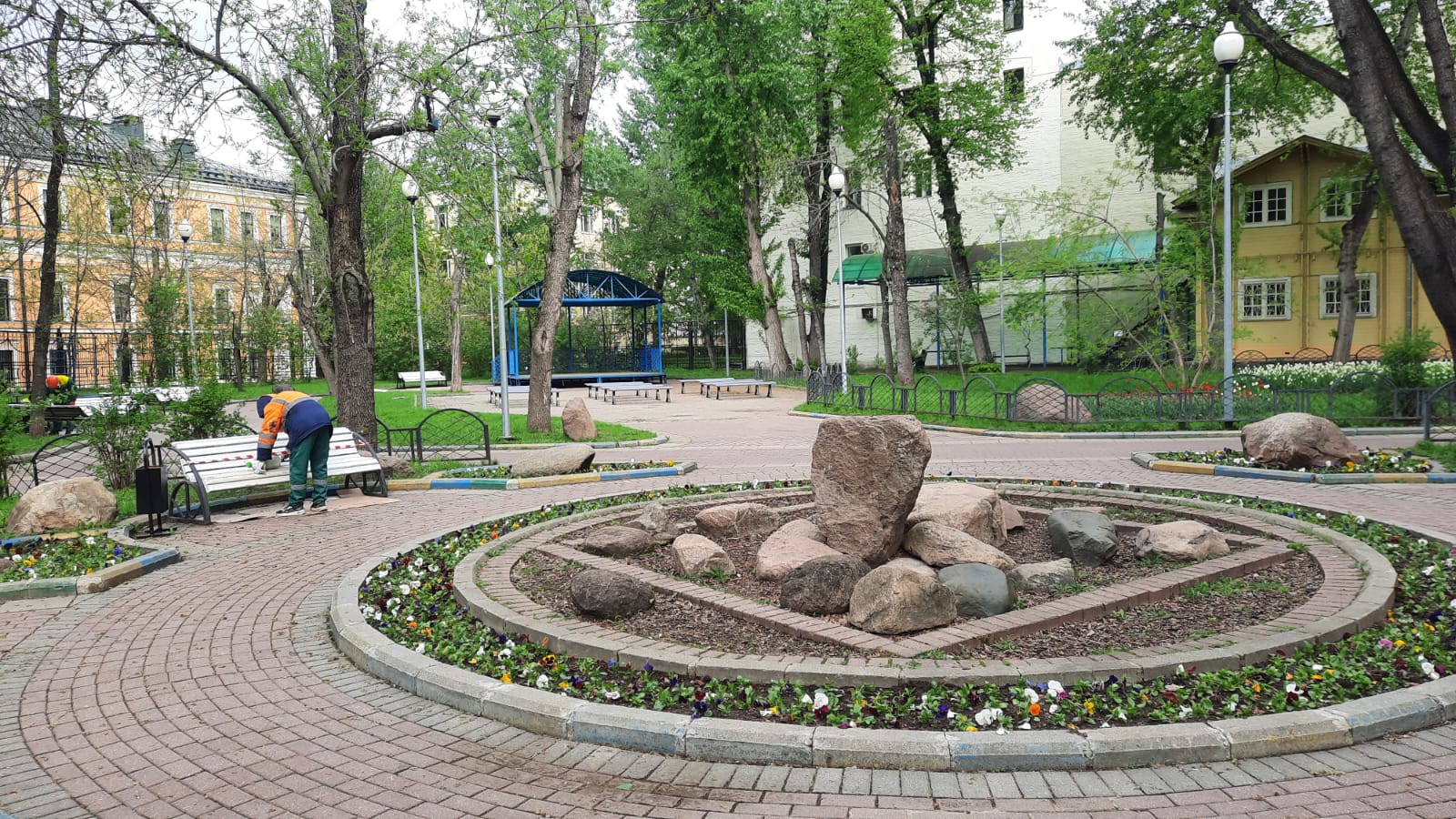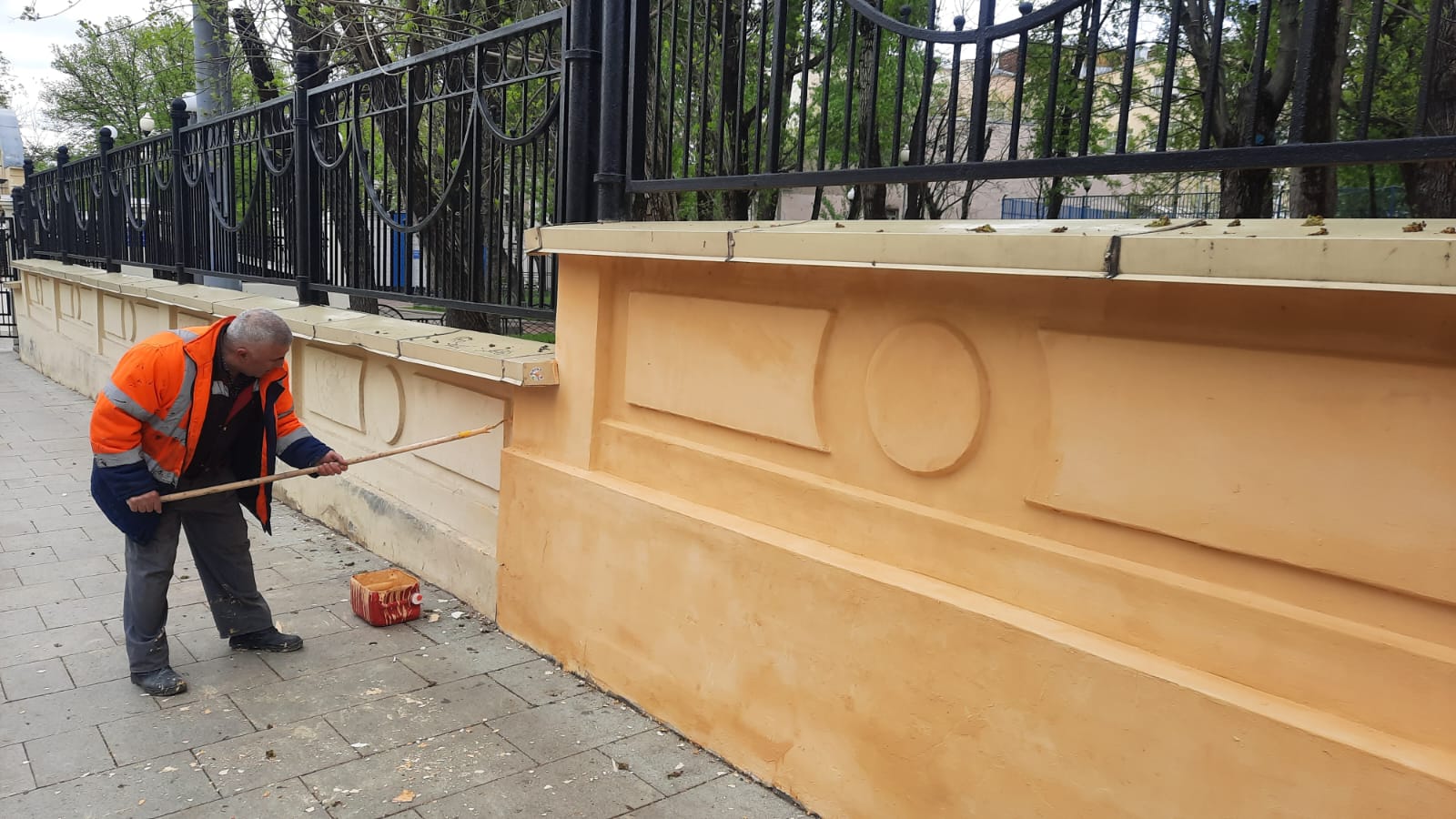 Была осуществлена покраска садовых диванов, скамеек, урн, ограждения; приведены в порядок газоны и клумбы.
