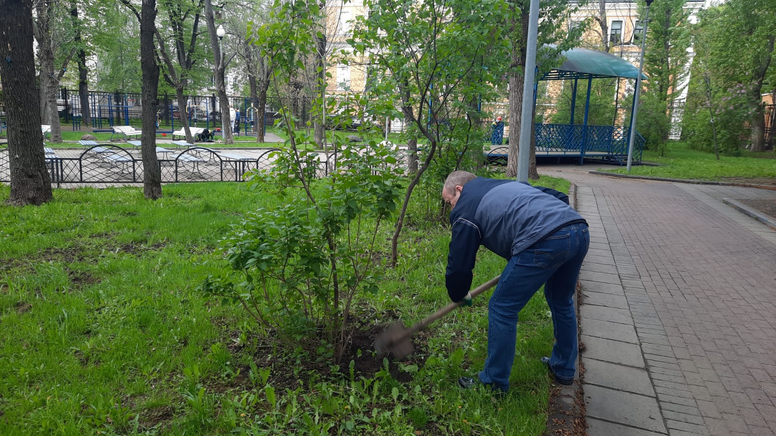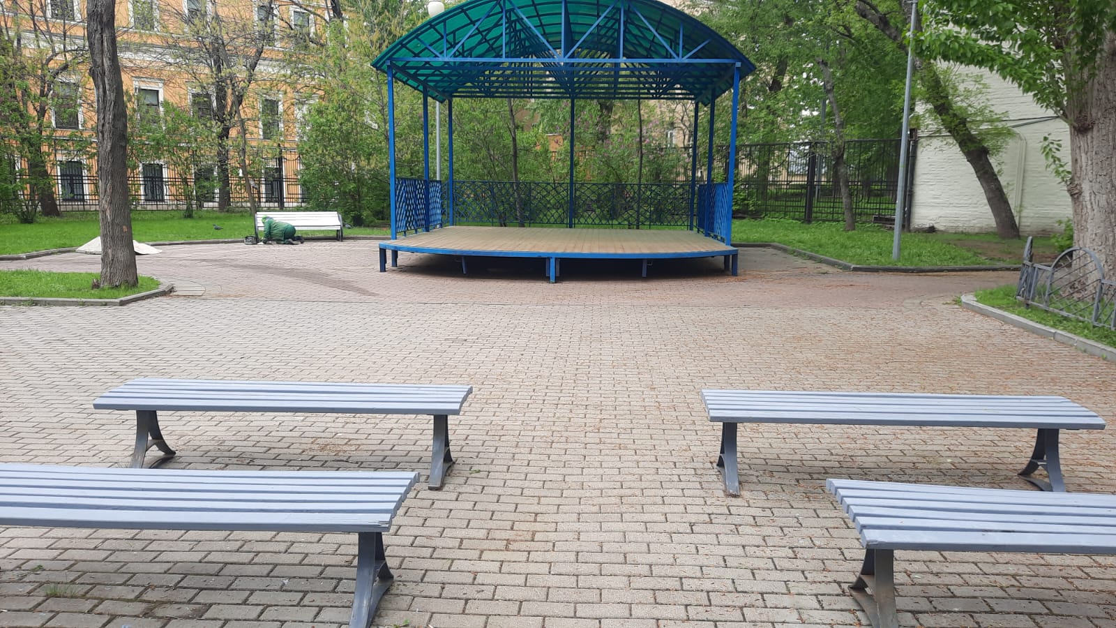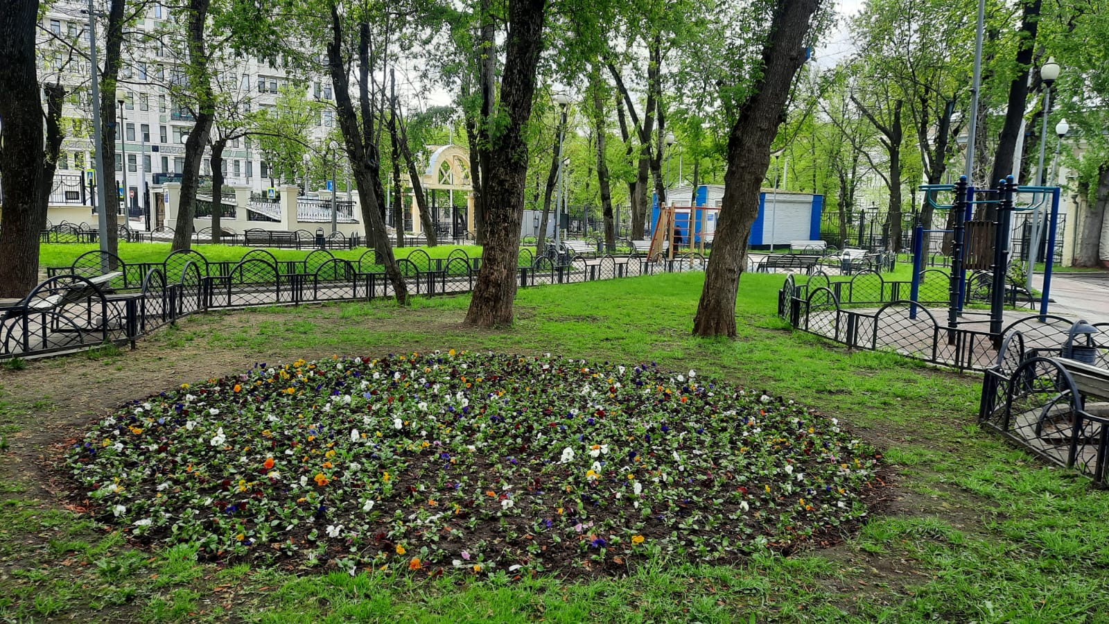 Была осуществлена покраска садовых диванов, скамеек, урн, ограждения; приведены в порядок газоны и клумбы.
