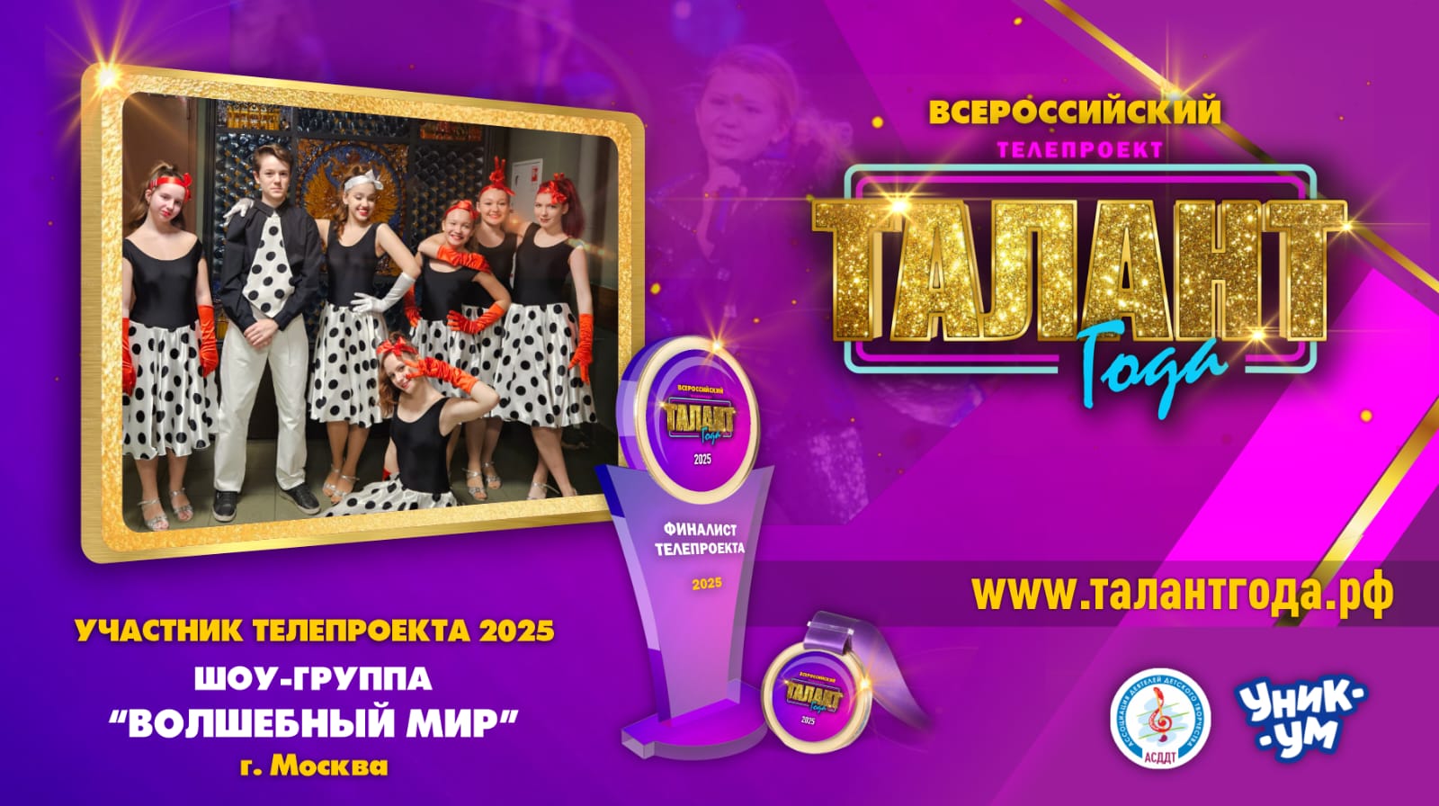 На телеканале «Уникум» (Детский) 31 мая в 17.20 и 01 июня в 11.00 выйдет в эфир выпуск Всероссийского телепроекта «Талант года – 2025».